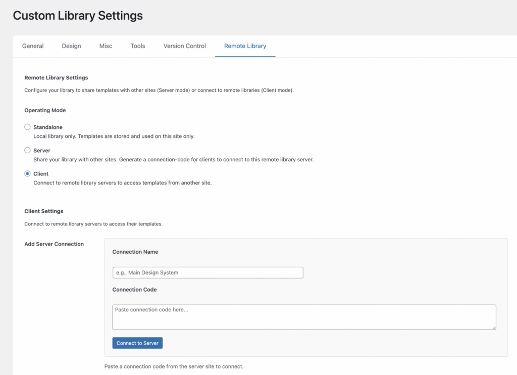 Client mode turns the site into a template consumer.