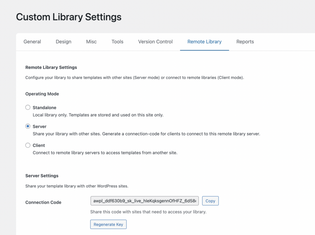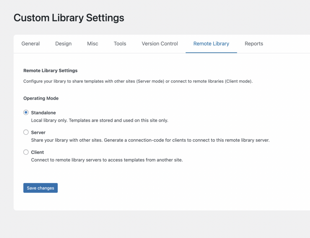 Server mode turns the site into a template provider.